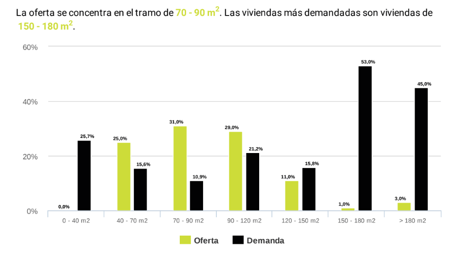 El indicador de oferta y demanda de vivienda en la zona indica la diferencia entre oferta y demanda según la superficie de vivienda.