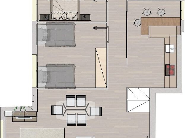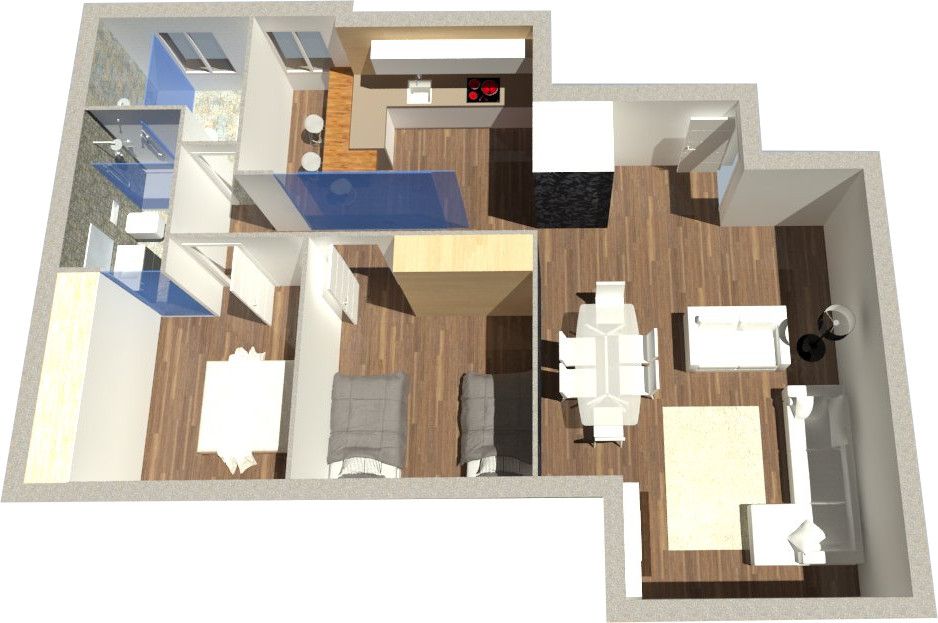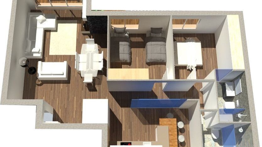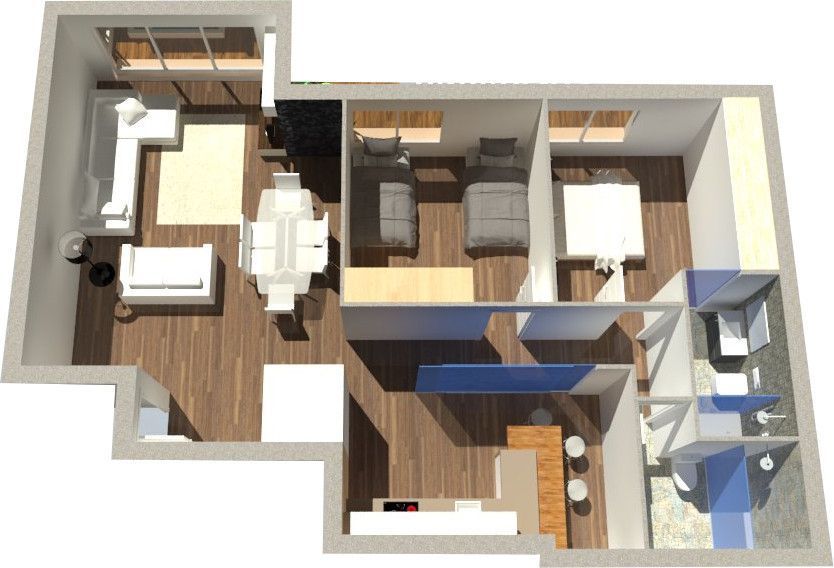 - Plano en 3D texturizado y amueblado.