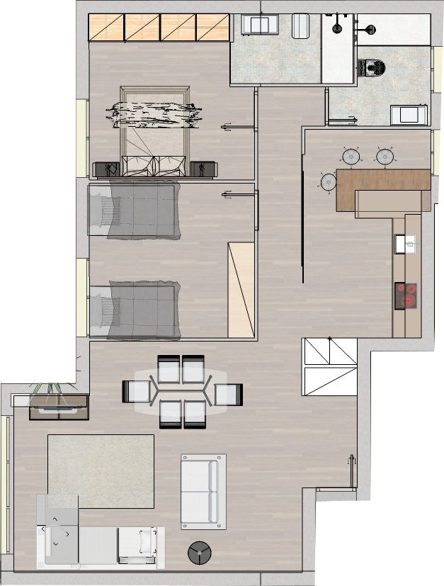 - Plano planta texturizado con materiales.